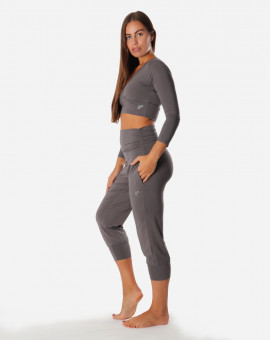 Tříčtvrteční kalhoty na jógu mají volnější střih, dvojitý pas s řasením a postranní kapsy. Lze nosit do pasu i jako bokovky. Oblečení na jógu z bambusové viskózy je prodyšné, pohodlné a jemné na dotek.